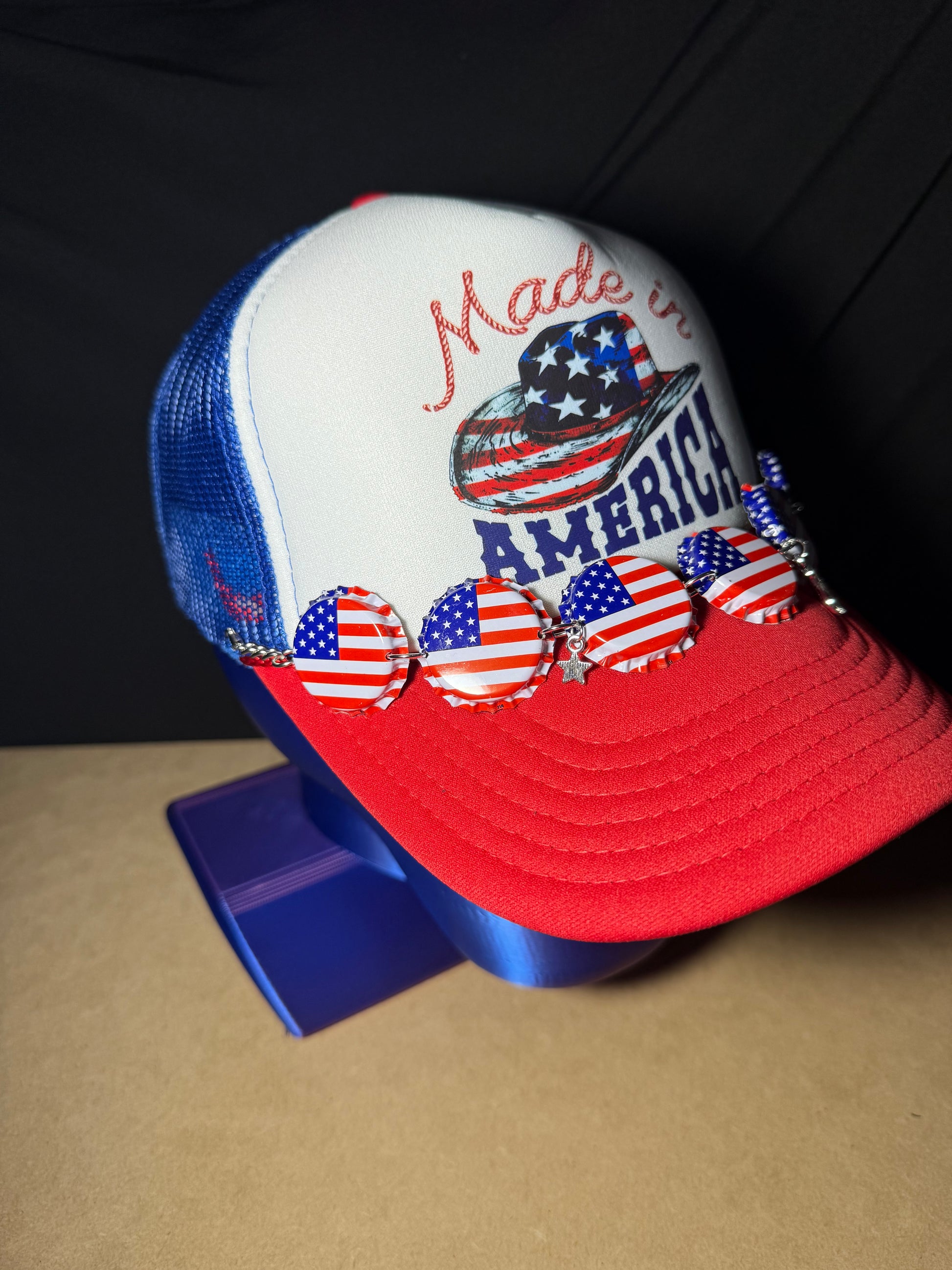Super cute OTTO cap foam trucker hat. It comes with the bottle cap hat chain and boot charm seen here.