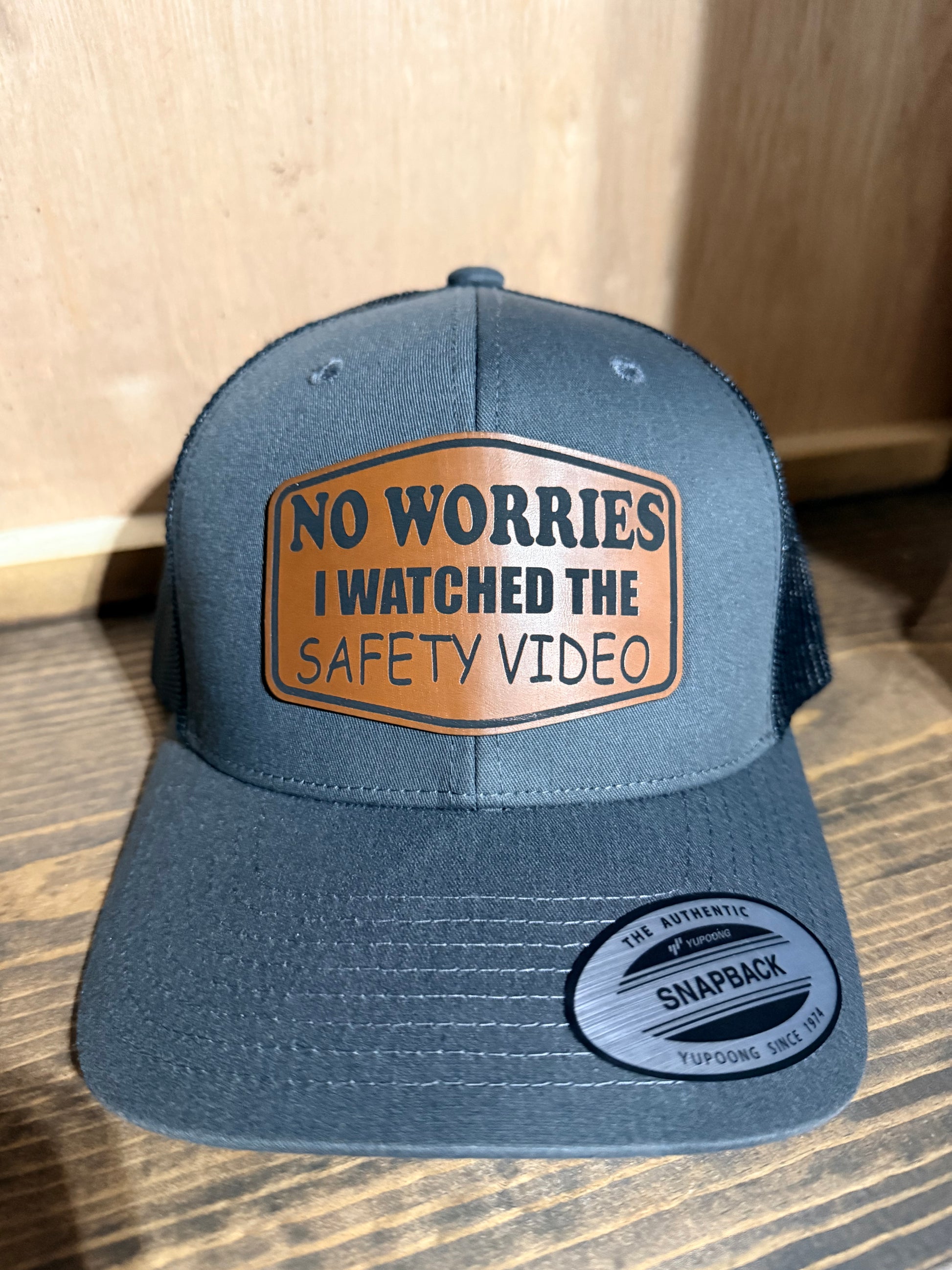 Richardson 112 snapback hat, the charcoal front and black back is pictured here. The patch is made of a brown leatherette material and a high-quality adhesive.